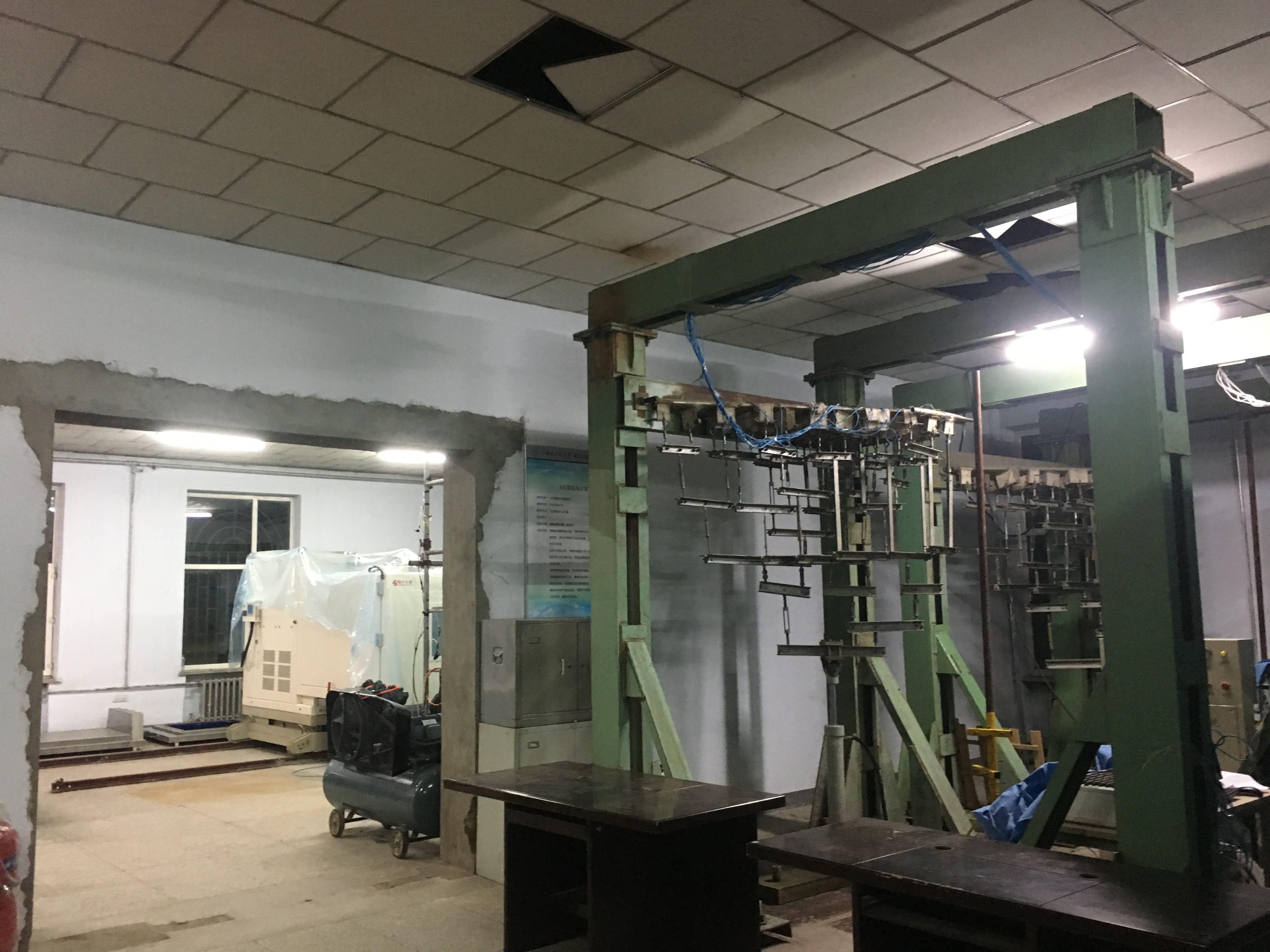 参观了风洞实验室,写着军工关键设备结果放在一个破房子里,天花板都是破的